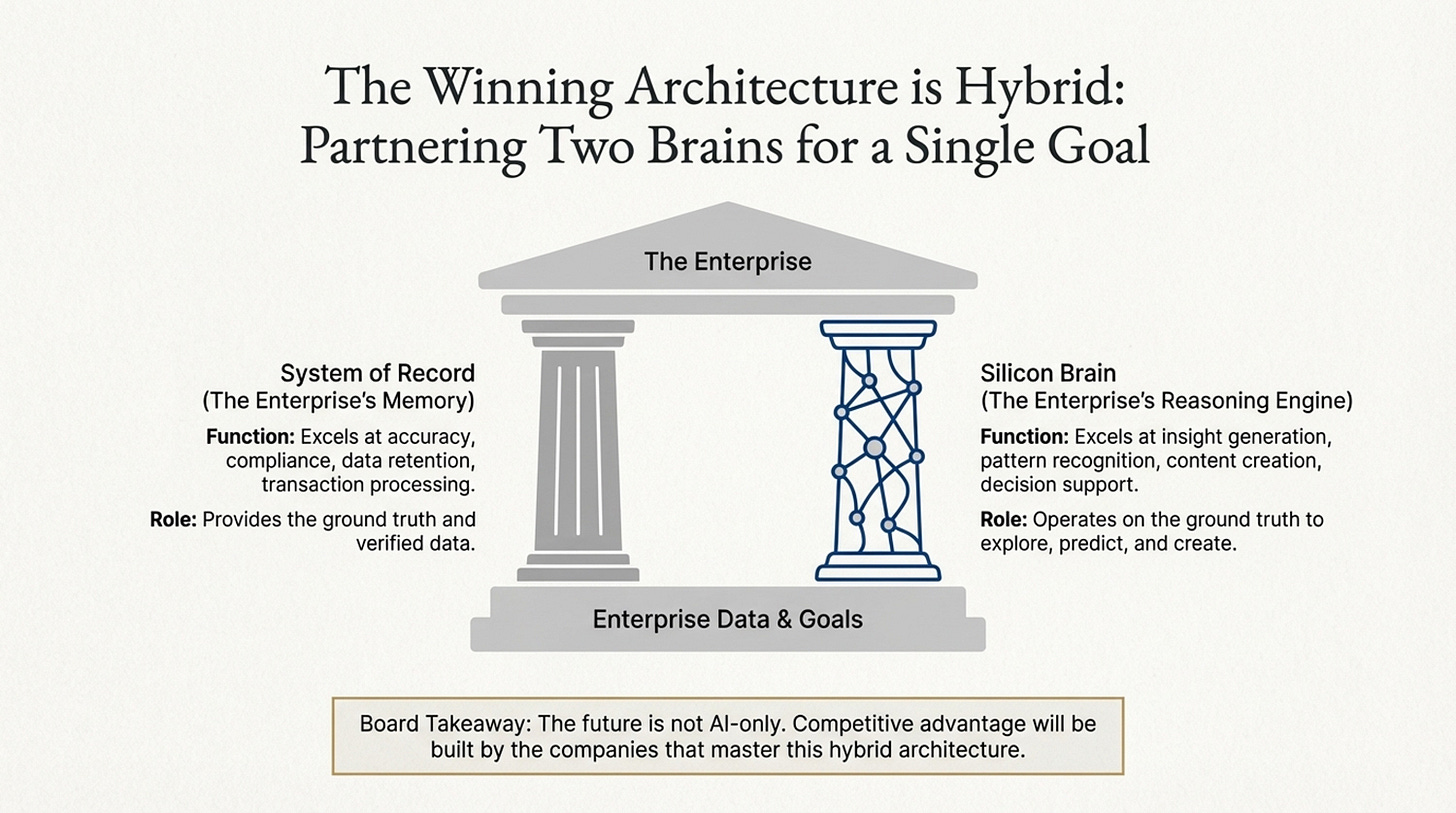 9. Strategic Hybrid: Using AI for reasoning and Traditional systems for record-keeping.