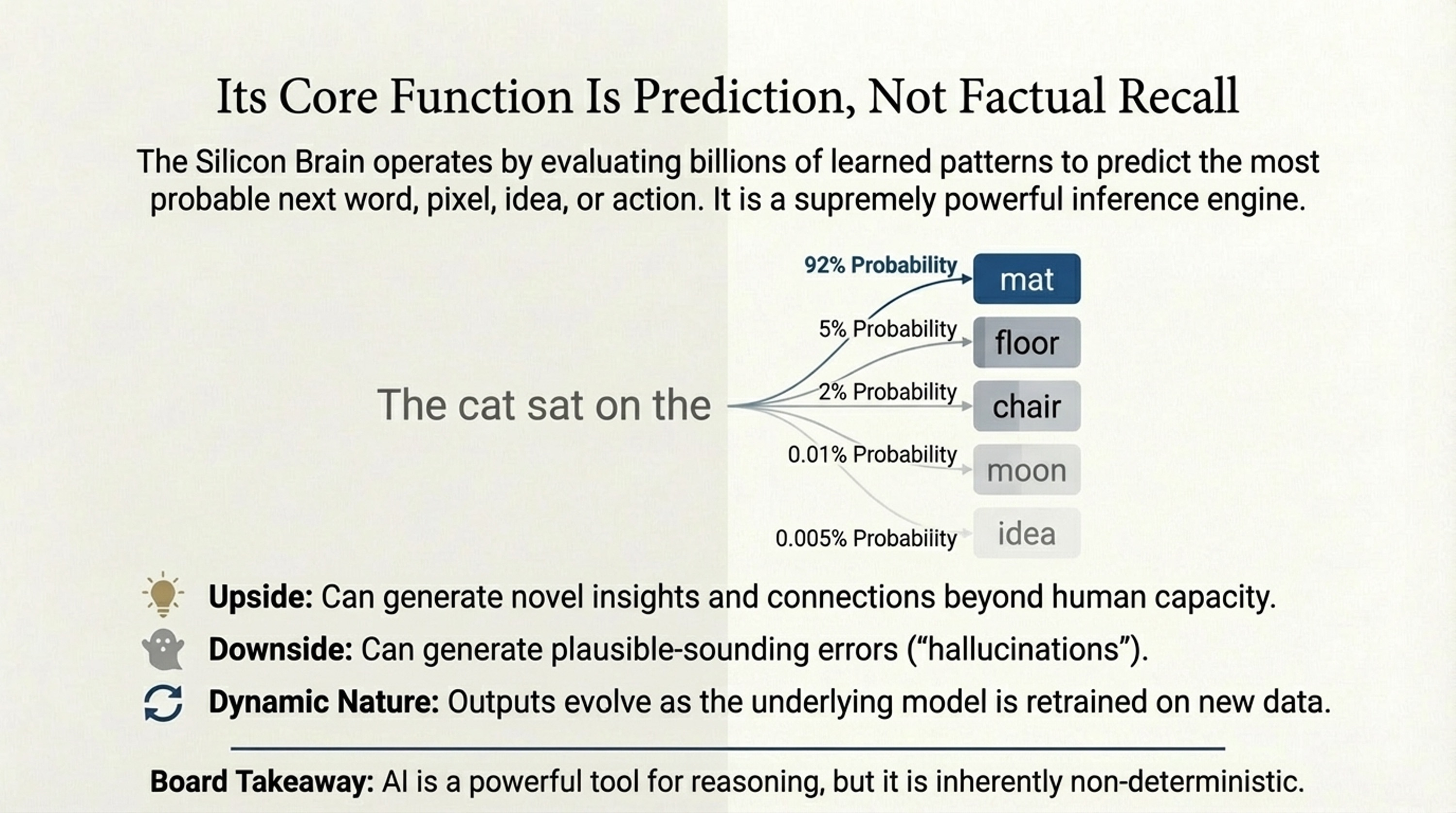 • Use the “Silicon Brain” concept to explain that AI has no traditional operating system or file storage.